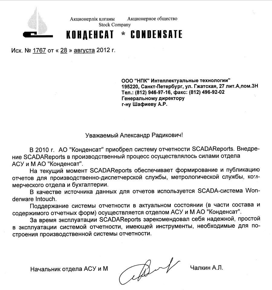 возможность создать полноценную систему отчетности силами собственных служб АСУТП